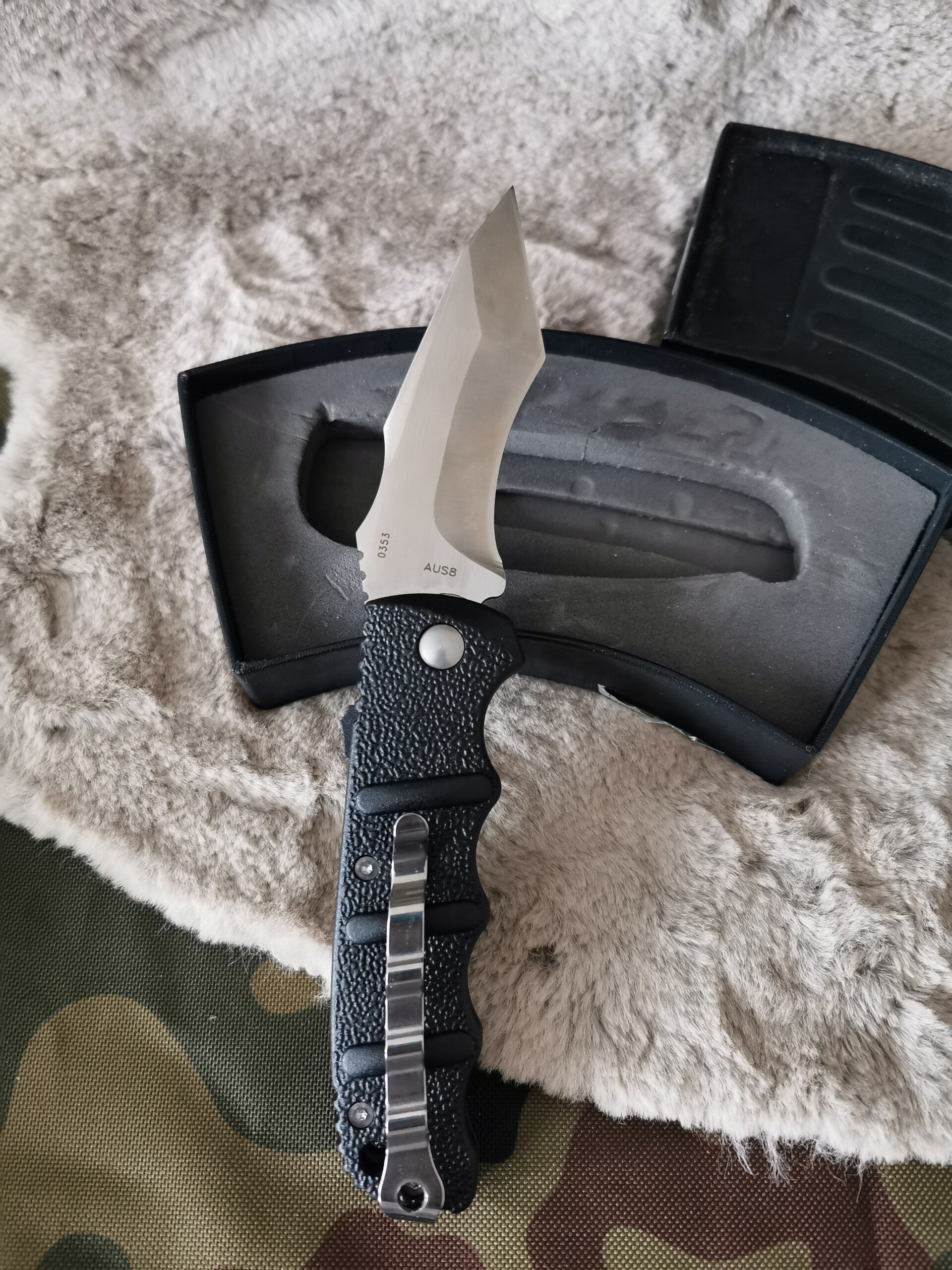 Das Messer ist neu, nur die Verpackung hat leichte Lagespuren bzw Verschmutzungen siehe Bilder