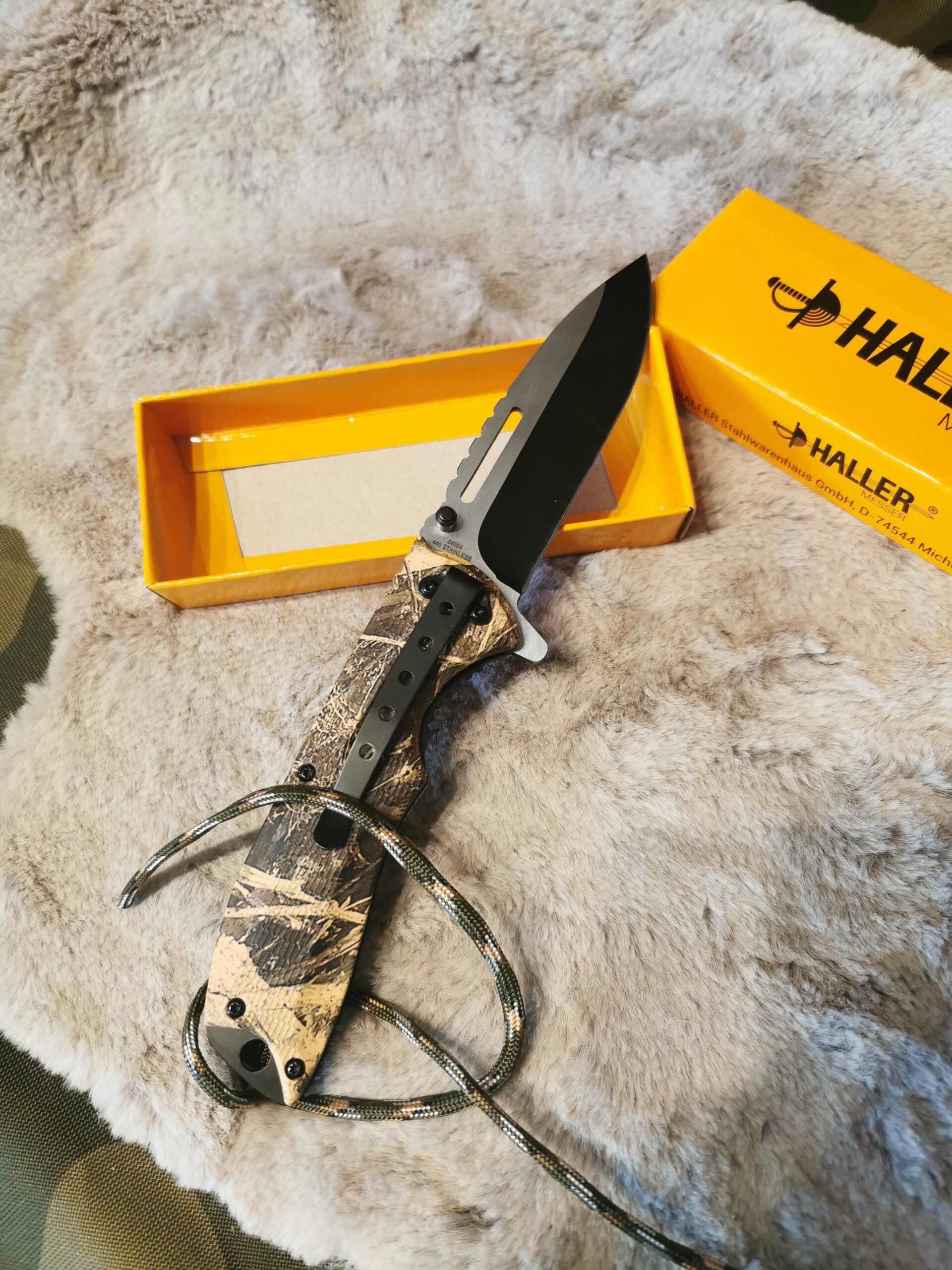 Biete hier ein Taschenmesser Camouflage von Haller an mit feststellbarer Klinge (liner)