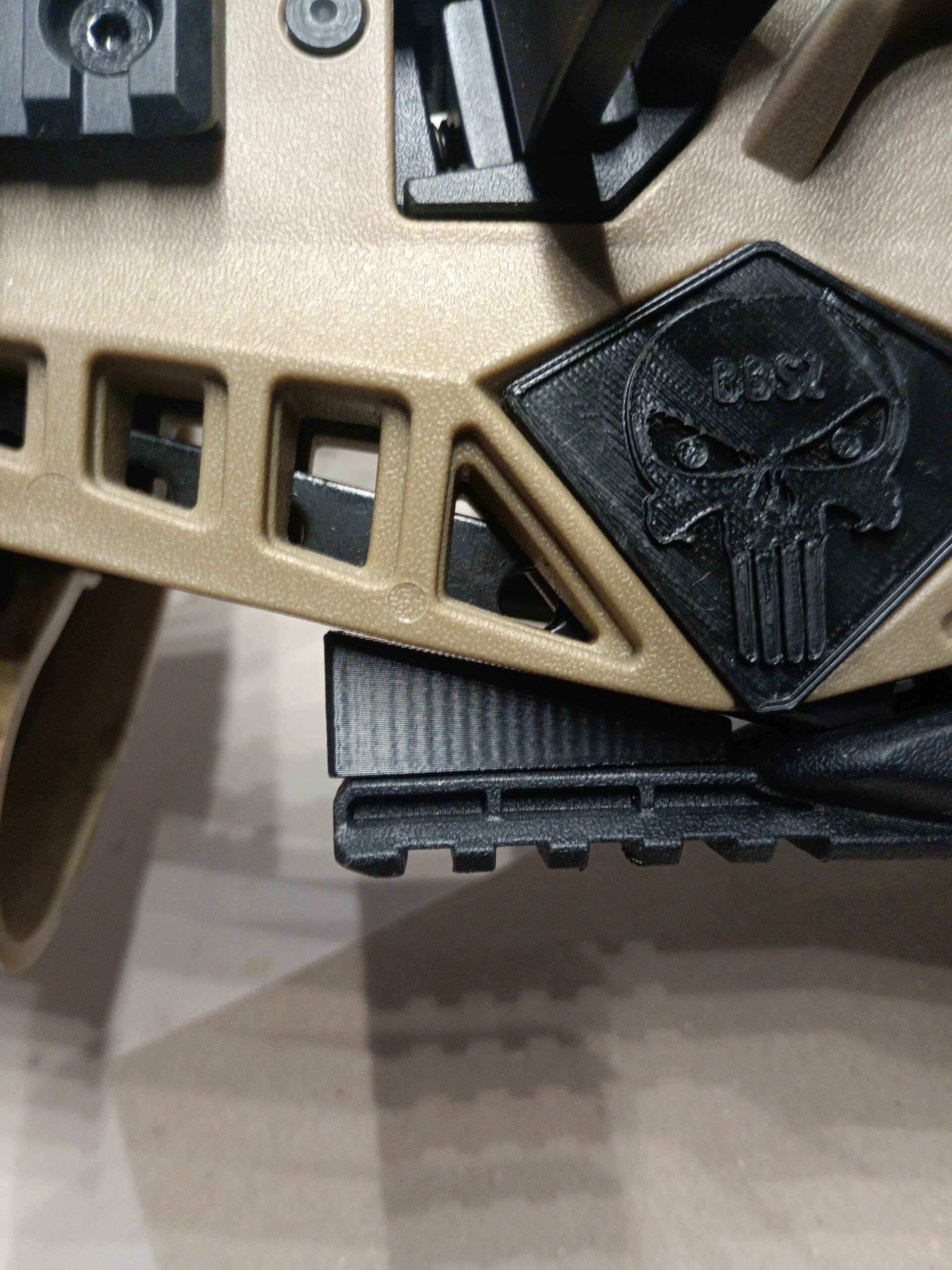 Hier ein neues 3D Zubehörteil für die EK Archery R9/R10/R9 Adder, dieses Keil wird am Vordergriff zwischen Picantinnyschiene und Armbrustkörper mir 2 Pins eingesteckt. Kein verkleben kein abfallen sondern 100% Passgenauigkeit und garantierte Befestigung.